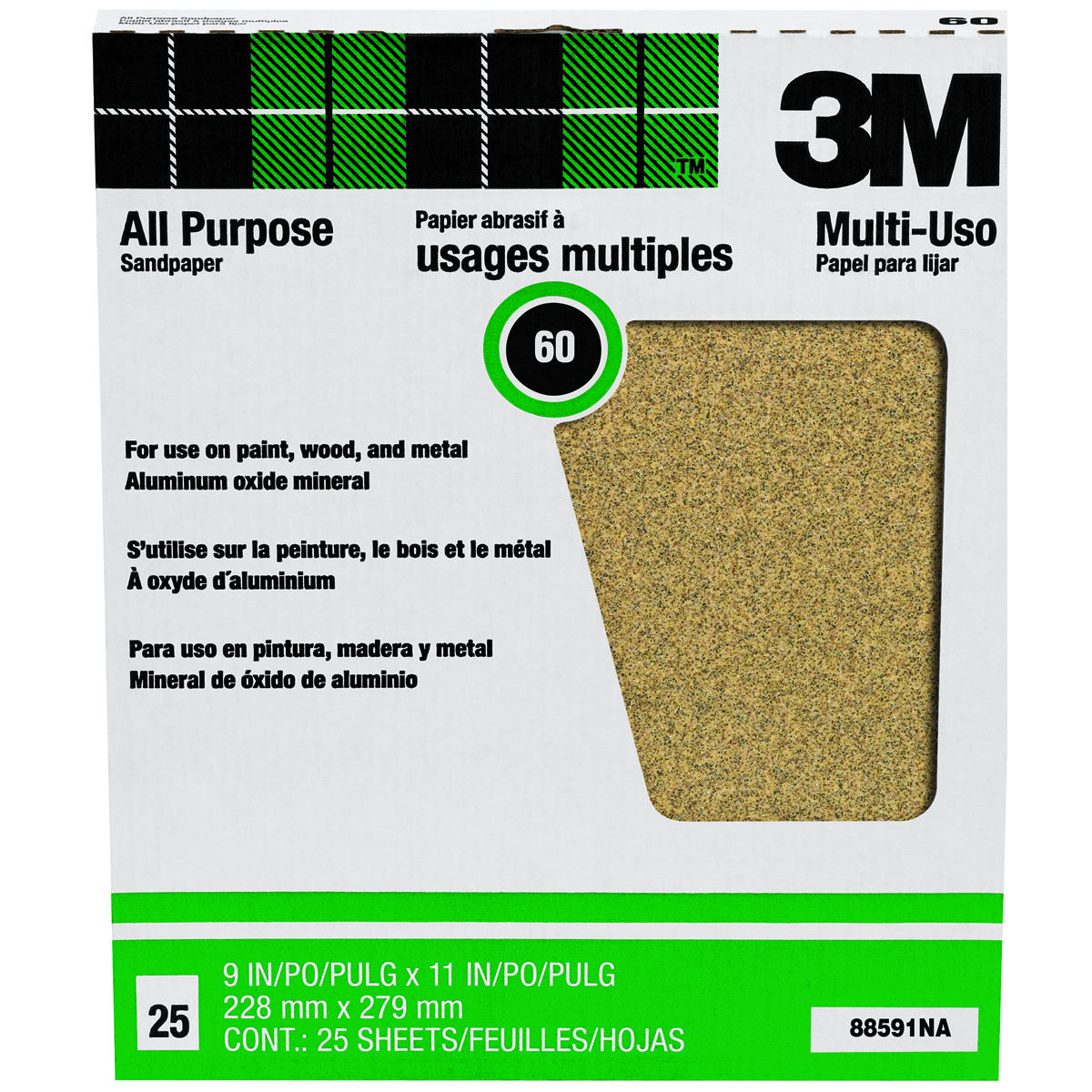 3M 88591 Pro-Pak Aluminum Oxide Sandpaper, 60 Grit, 9" x 11", 25-Count