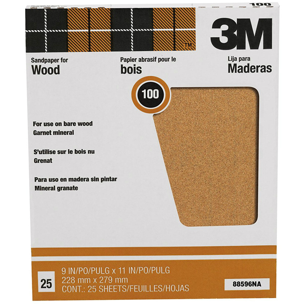 3M 88596 Pro-Pak Garnet Sandpaper, 100 Grit, 9" x 11", 25-Count