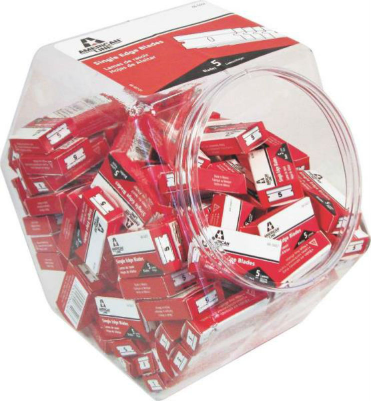 - Display contains: 100 UPC-coded tucks of 5's per sealed, reshippable tub. 0.009" high-carbon surgical steel, Single Edge blades each protected in shelling paper.