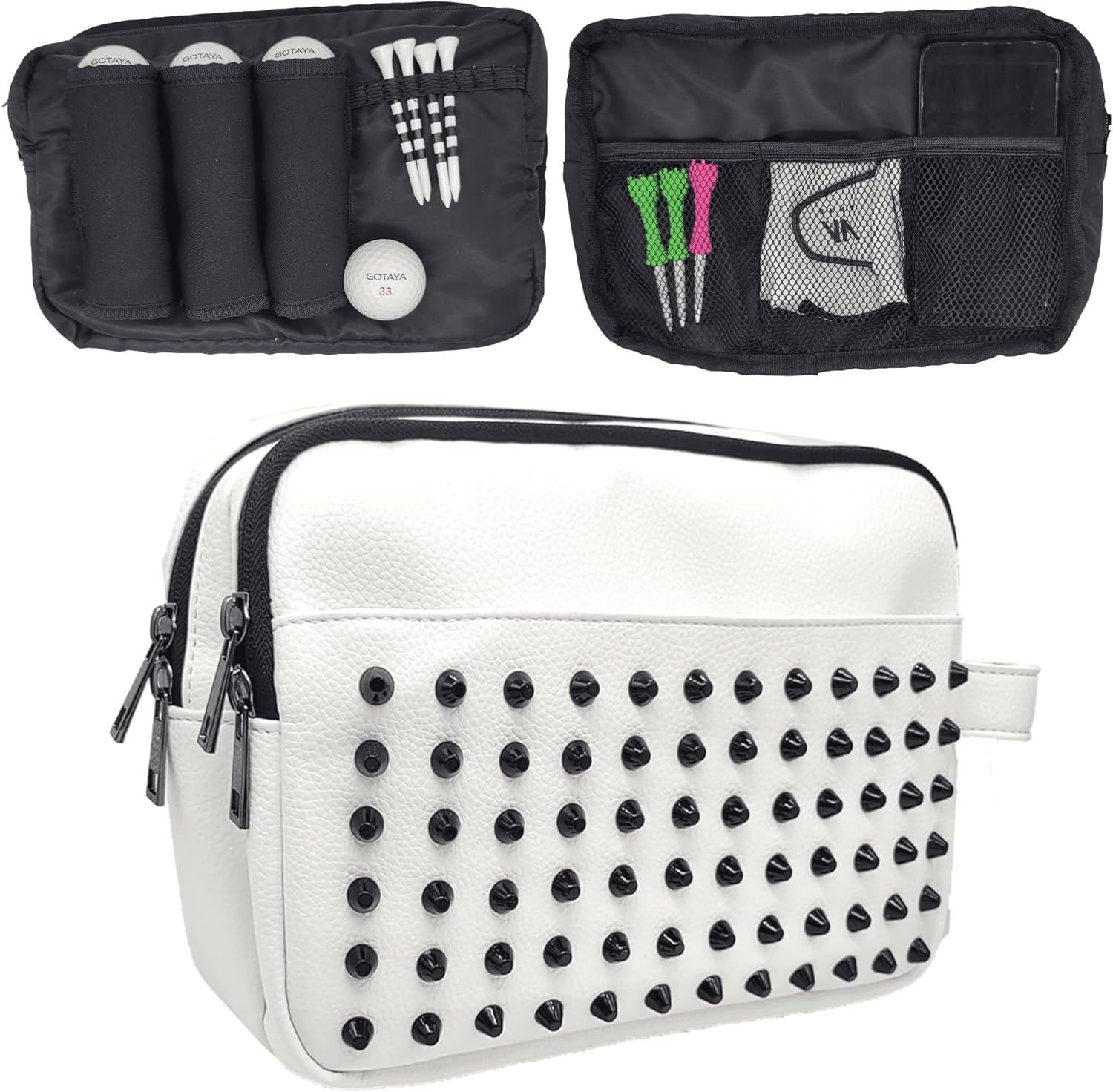 Golf Valuables Pouch Organizer Studded Bag for Accessories | Tee Ball Marker Glove Cellphone Key | Golfer Gift Women Men Cart Travel