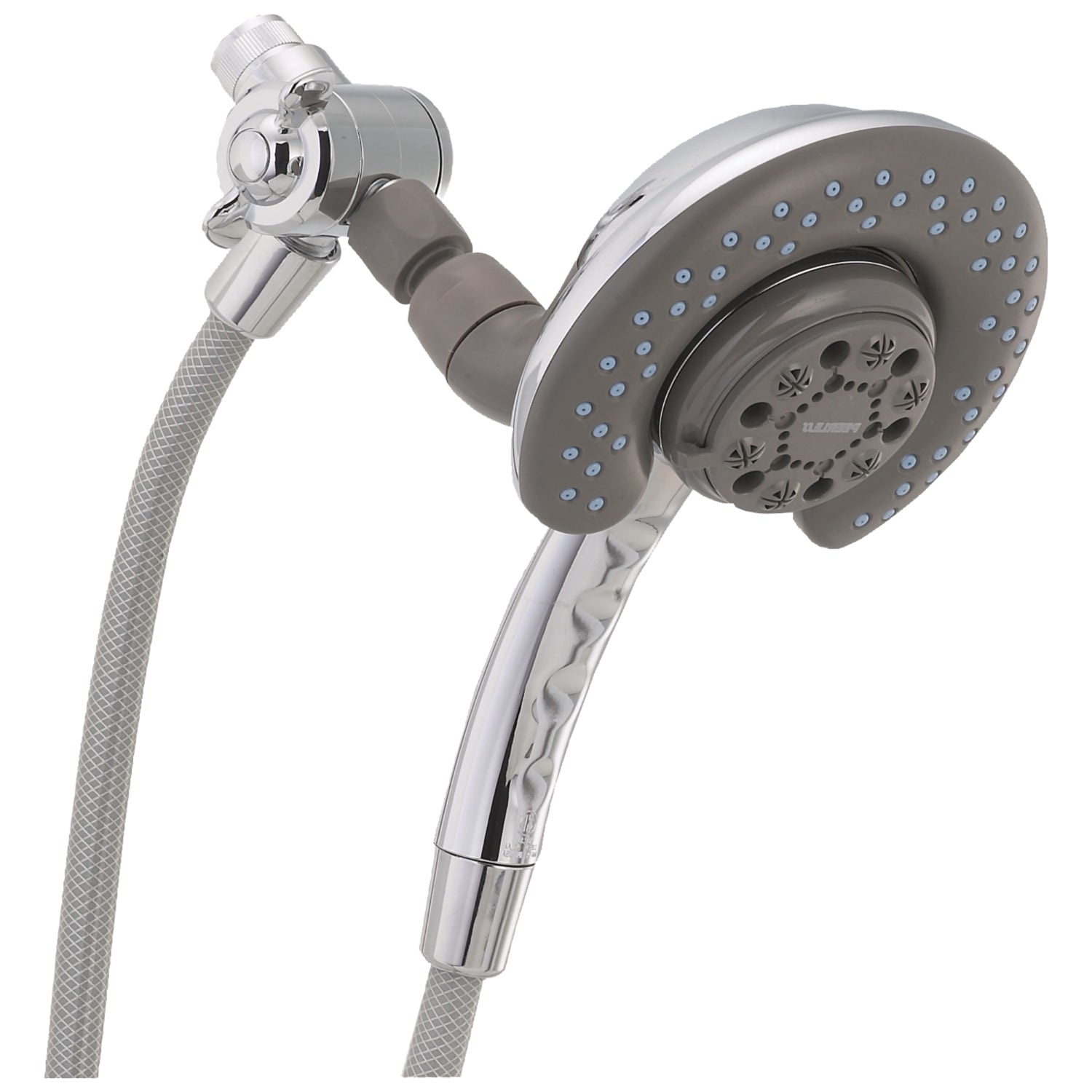 Operates as a hand shower, shower head or both at one time. 4-spray/massage hand shower features unique crossing spray settings. Integrated handshower docks securely into showerhead when not in use. 60" hose