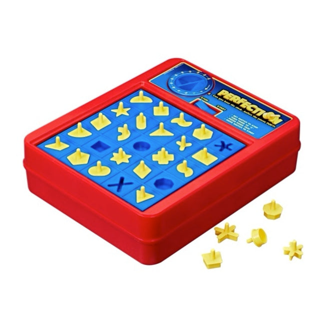 Ready, set, go! Be the quickest to fit all 25 shapes into their matching holes in the tray. But watch the timer! If it runs out…pop goes the Perfection game! The player who matches all 25 shapes in the shortest time wins. While kids are having a blast playing the Perfection game, they can also practice valuable skills including focus, hand-eye coordination, and shape recognition. Play without the timer so that it's easier for younger players. And, when they're all done playing, easily store the pieces inside the game unit.