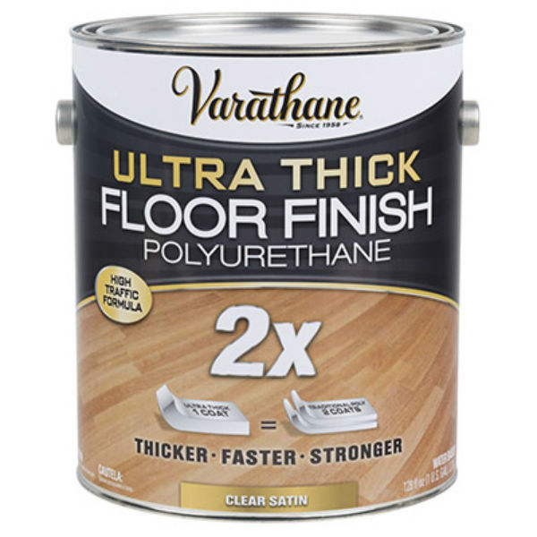 Varathane® Ultra Thick Floor Finish offers a thicker, stronger and faster project completion than traditional floor finish polyurethane. The advanced self-leveling technology allows floor finish projects to be completed in only 2 coats instead of the traditional 3-4 coats. This water-based formula provides exceptional scuff, scratch, and stain resistance with the convenience of soap and water clean-up. Ideal for all interior wood floors and surfaces including furniture, doors, trim, and more.