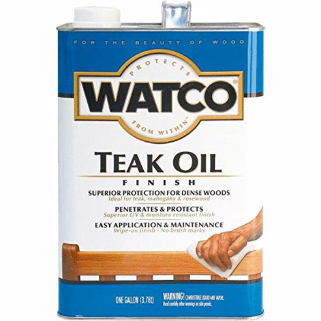 WATCO Teak Oil is specifically formulated for dense woods such as teak, rosewood or mahogany. WATCO Teak Oil penetrates deep into wood pores to create the rich, warm glow of a hand-rubbed finish. It takes less than an hour to treat your wood with WATCO Teak Oil - simply brush or wipe on and wipe off. WATCO Teak Oil is the choice of fine woodworkers and novices alike.