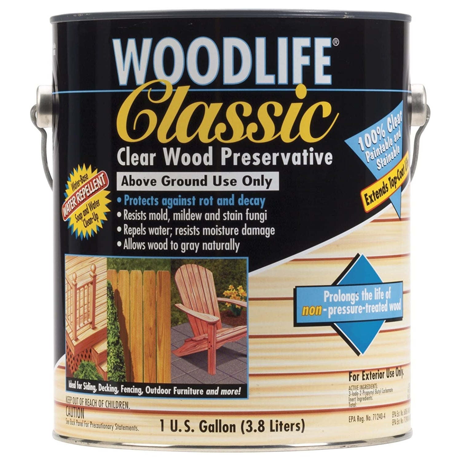 WoodLife Classic clear wood preservative is a clear, fungicidal exterior wood preservative with water repellent designed for use on above ground applications where either pressure-treated or non-pressure-treated wood has been used. WoodLife Classic protects against rot and decay by inhibiting mold, mildew and staining fungus growth on the wood surface. It has excellent water repellency and anti-wicking properties which resist moisture absorption through the surface sides and end cuts to give greater resistance to dimensional warping, splitting and end-checking. The paintable and stainable formula will extend topcoat service life by inhibiting peeling and blistering.