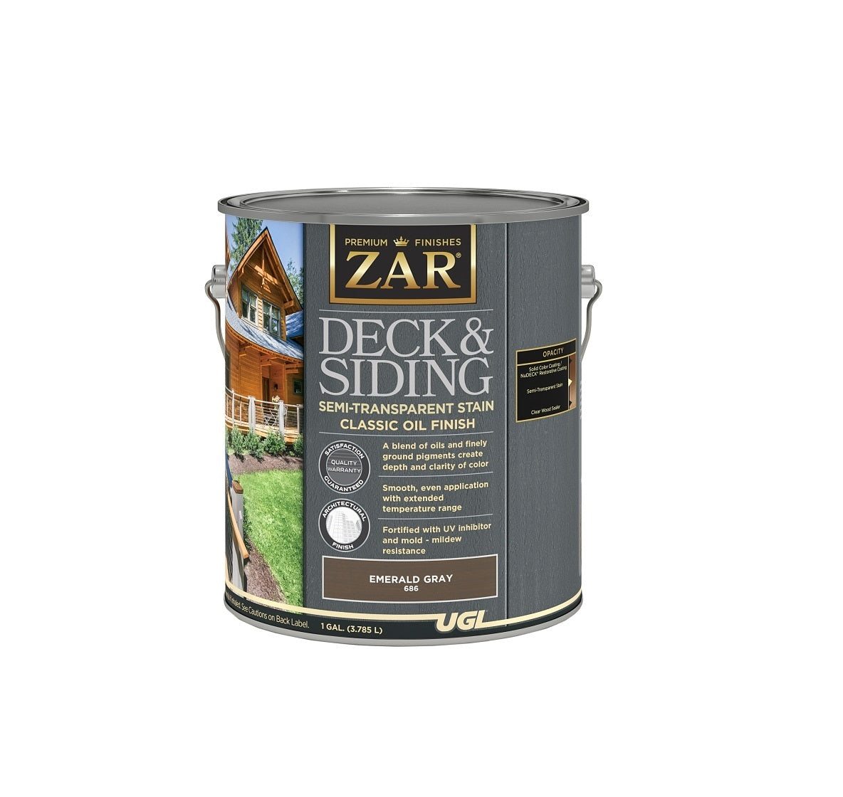 Zar 68613 Deck and Siding Semi-Transparent Stain, Emerald Grey, 1 Gallon